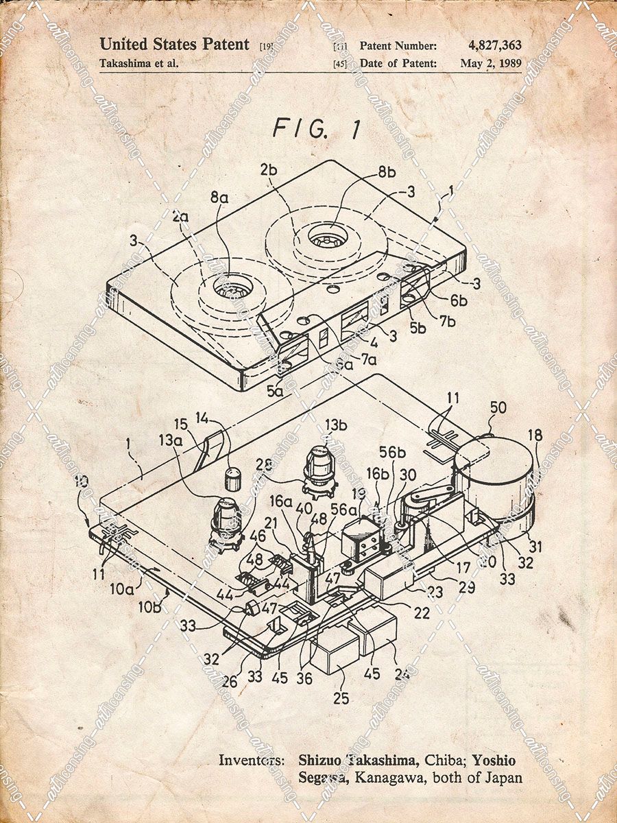 PP1104-Vintage Parchment Toshiba Cassette Tape Recorder Patent Poster
