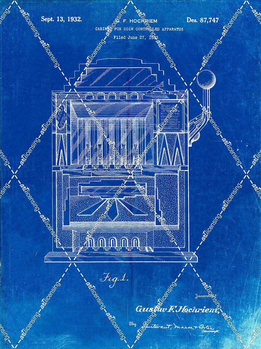 PP1125-Faded Blueprint Vintage Slot Machine 1932 Patent Poster