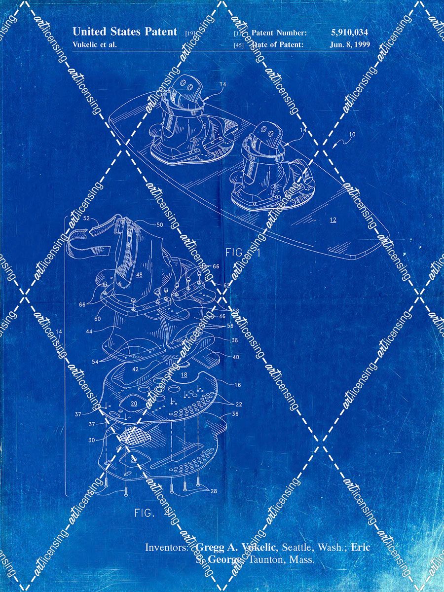 PP1131-Faded Blueprint Wakeboard Patent Poster