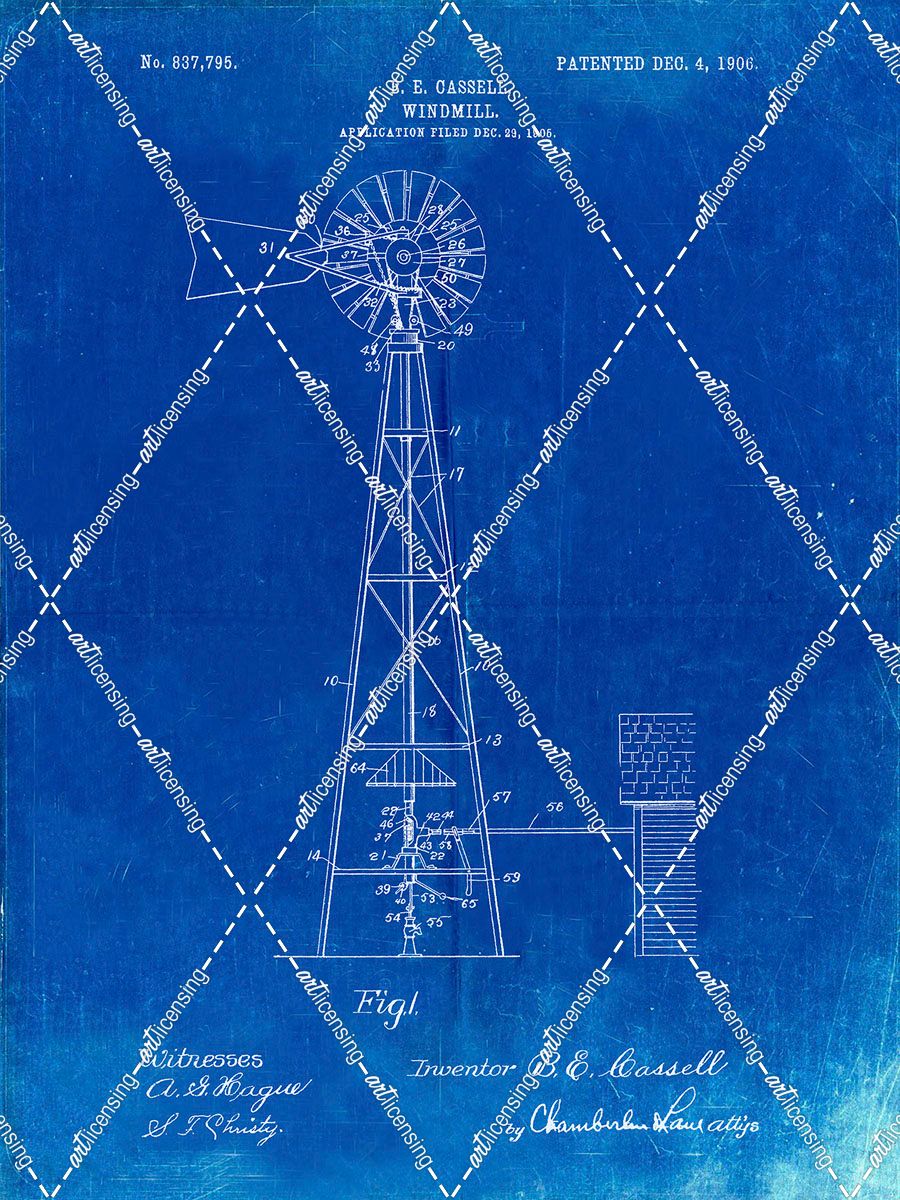PP1137-Faded Blueprint Windmill 1906 Patent Poster