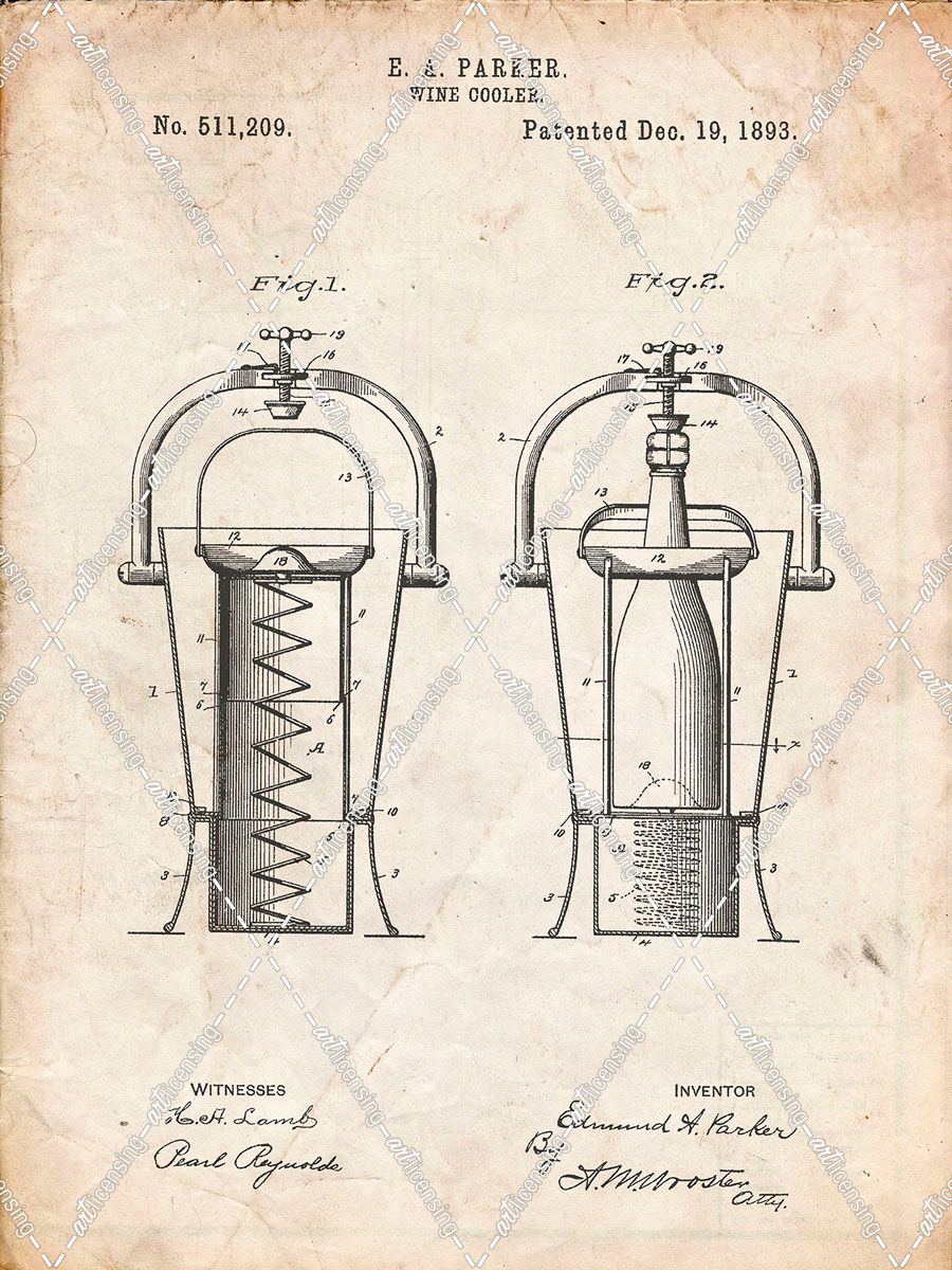 PP1138-Vintage Parchment Wine Cooler 1893 Patent Poster
