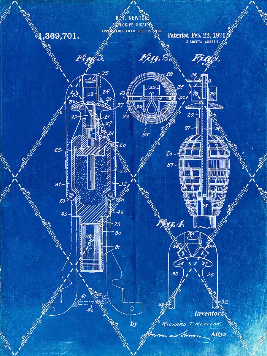 PP12-Faded Blueprint Explosive Missile Patent Poster