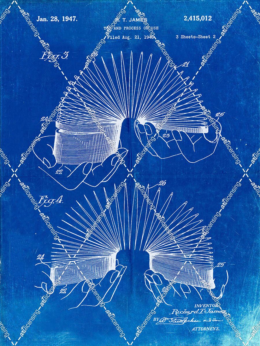 PP125- Faded Blueprint Slinky Toy Patent Poster