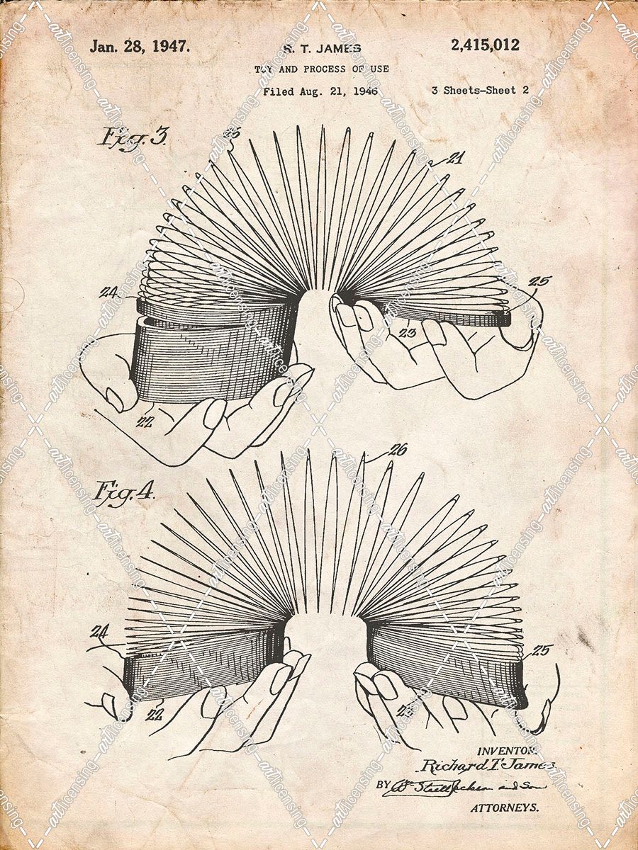 PP125- Vintage Parchment Slinky Toy Patent Poster