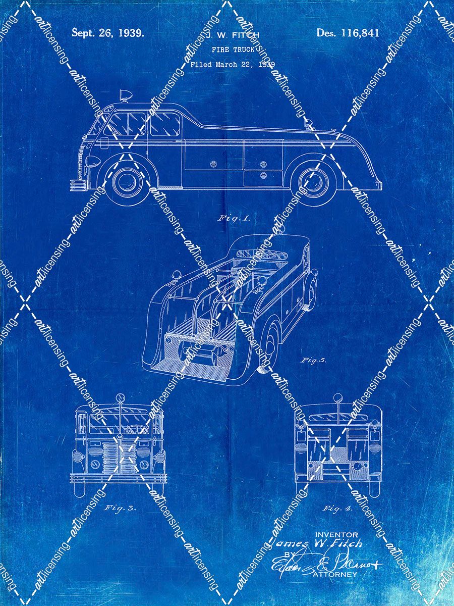 PP128- Faded Blueprint Firetruck 1939 Patent Poster