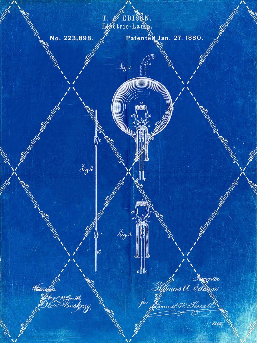 PP133- Faded Blueprint Thomas Edison Light Bulb Poster
