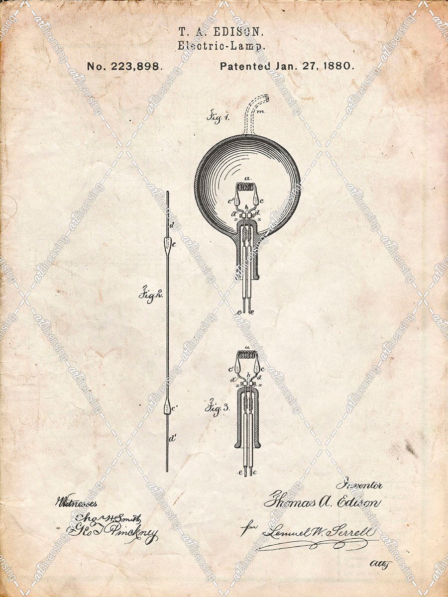 PP133- Vintage Parchment Thomas Edison Light Bulb Poster