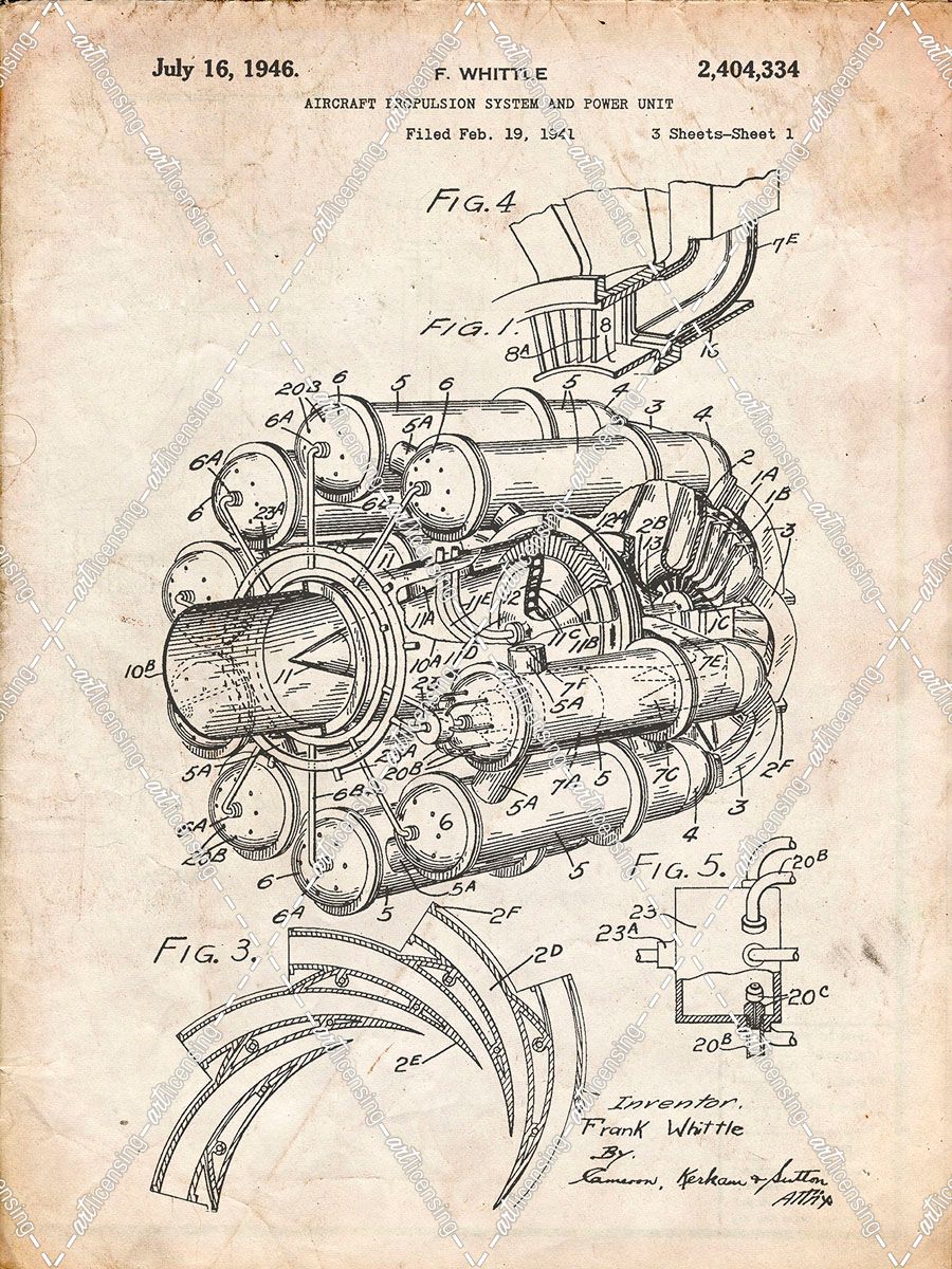 PP14-Vintage Parchment Jet Engine Patent Poster