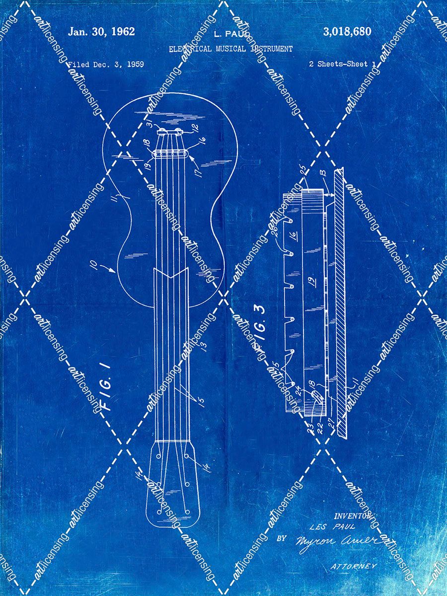 PP140- Faded Blueprint Gibson Les Paul Guitar Patent Poster