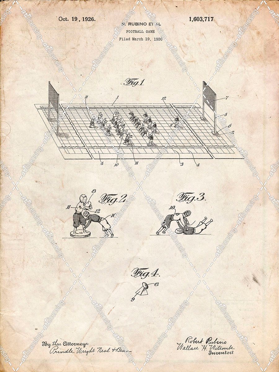PP142- Vintage Parchment Football Board Game Patent Poster