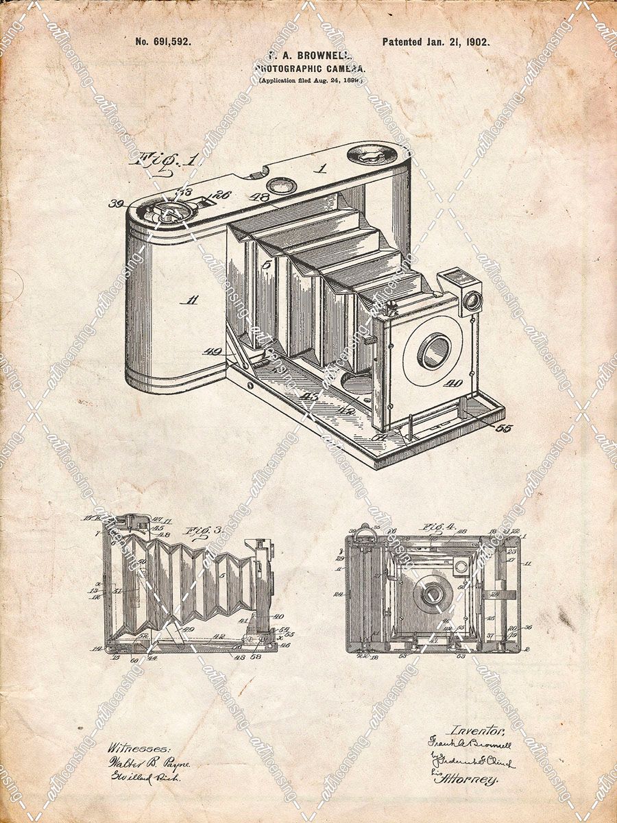 PP15-Vintage Parchment Kodak Pocket Folding Camera Patent Poster