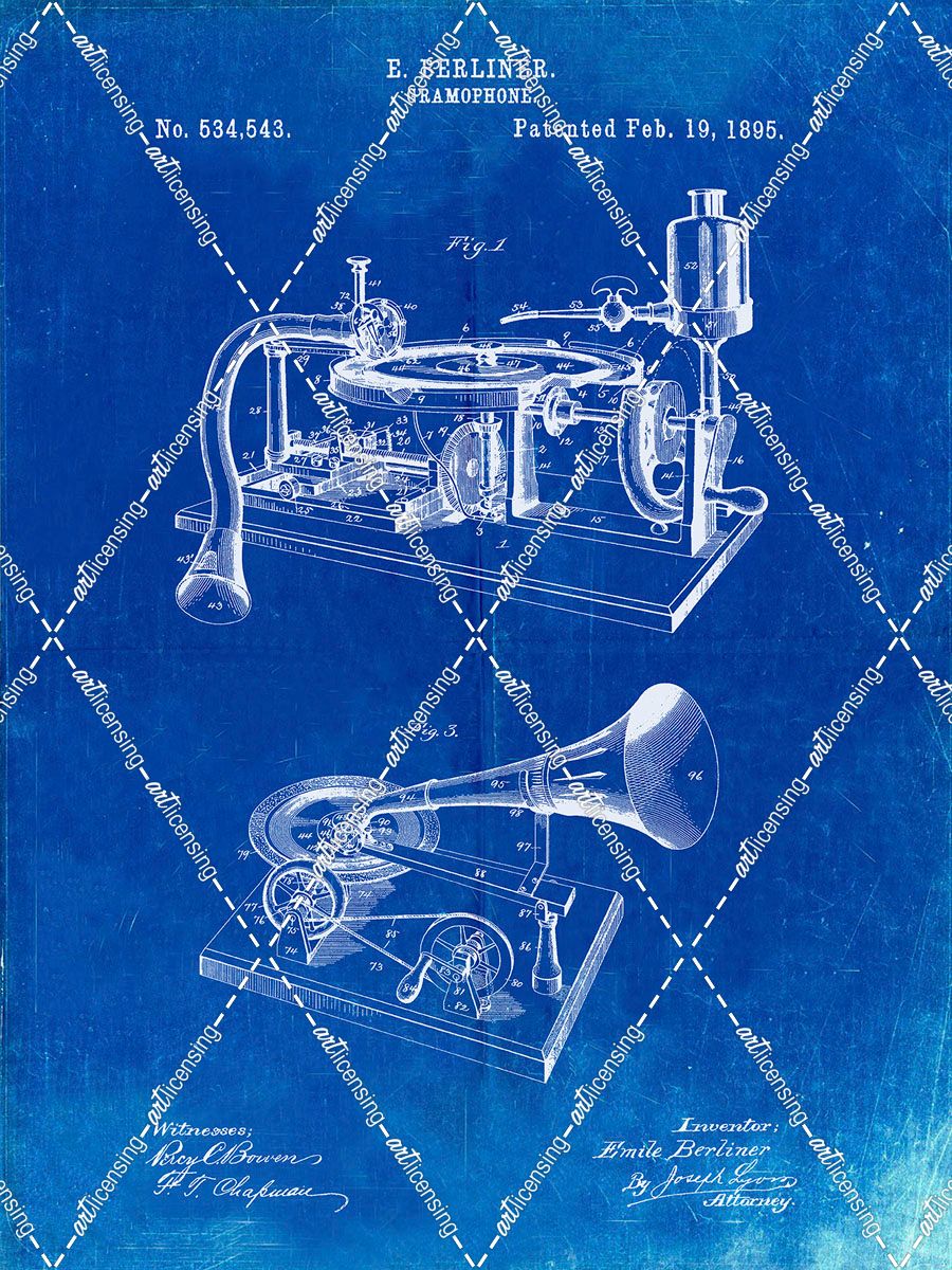 PP160- Faded Blueprint Berliner Gramophone Poster