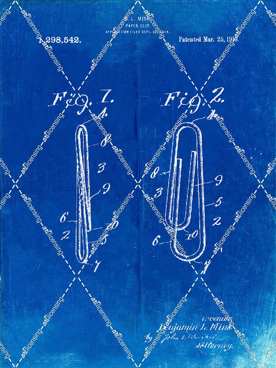 PP165- Faded Blueprint Paper Clip Patent Poster