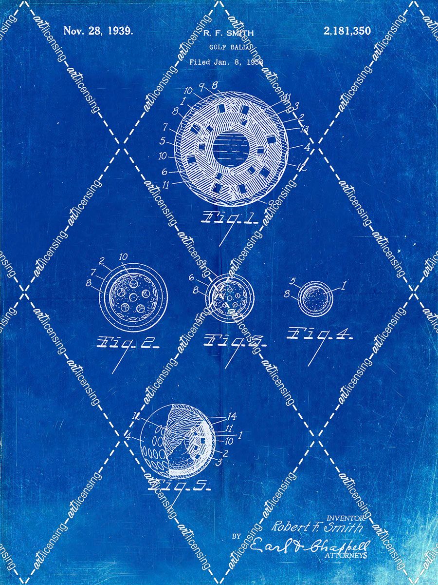 PP168- Faded Blueprint Golf Ball Uniformity Patent Poster
