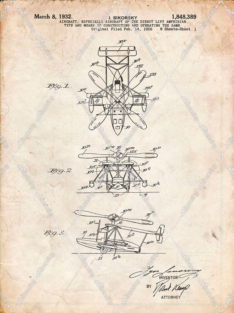 PP170- Vintage Parchment Sikorsky S-41 Amphibian Aircraft Patent Poster