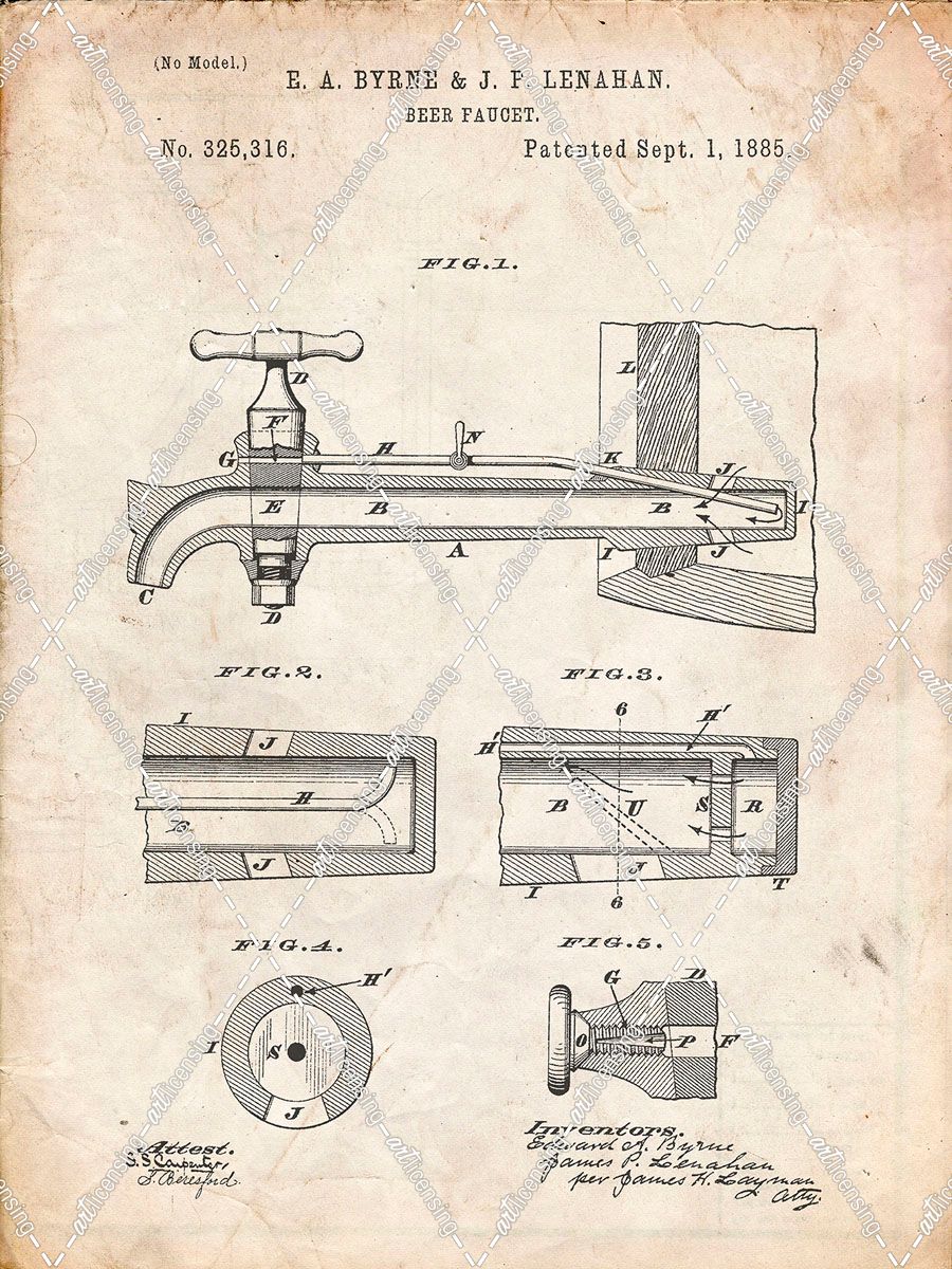 PP185- Vintage Parchment Beer Tap Patent Poster