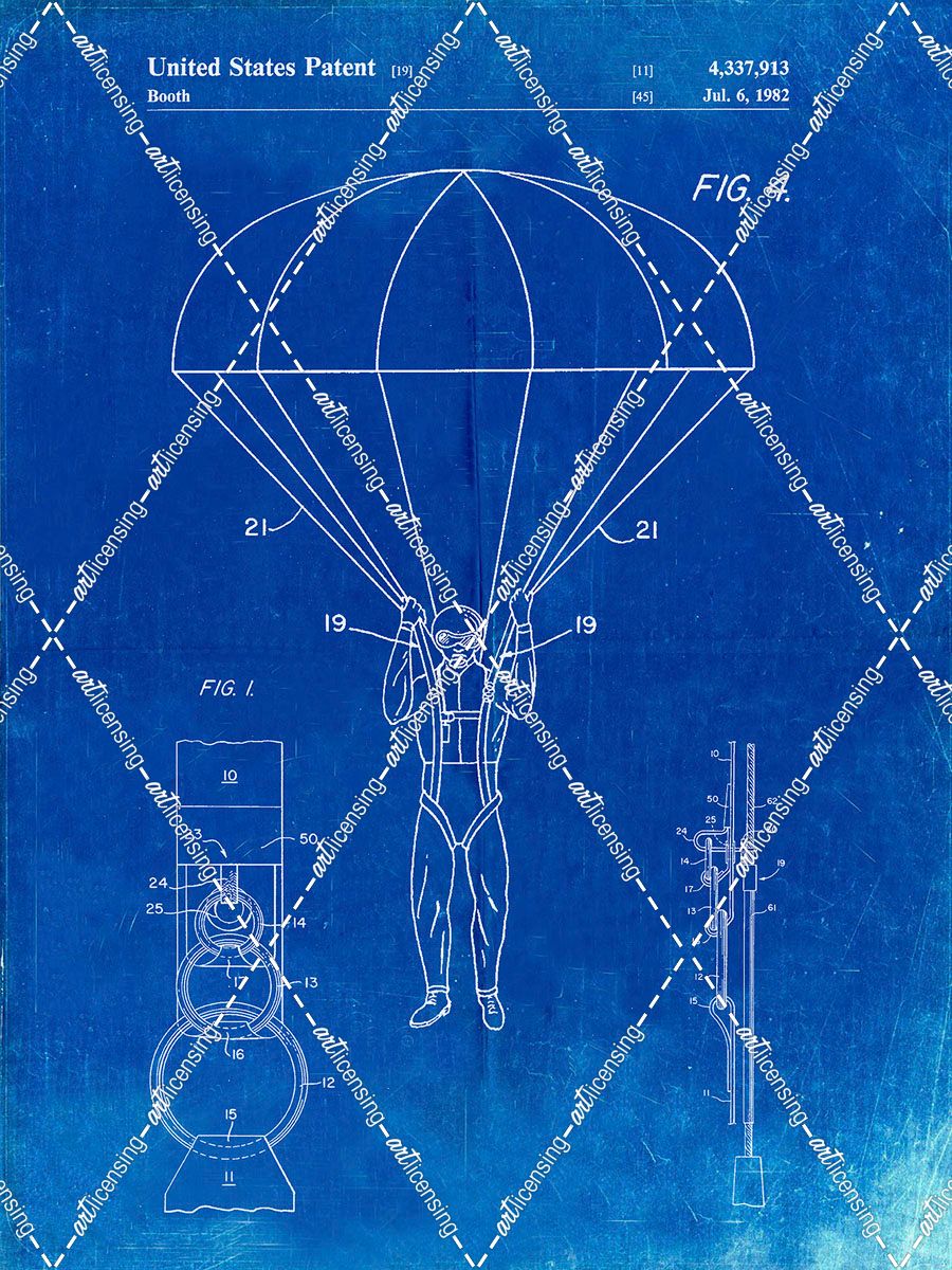 PP187- Faded Blueprint Parachute 1982 Patent Poster