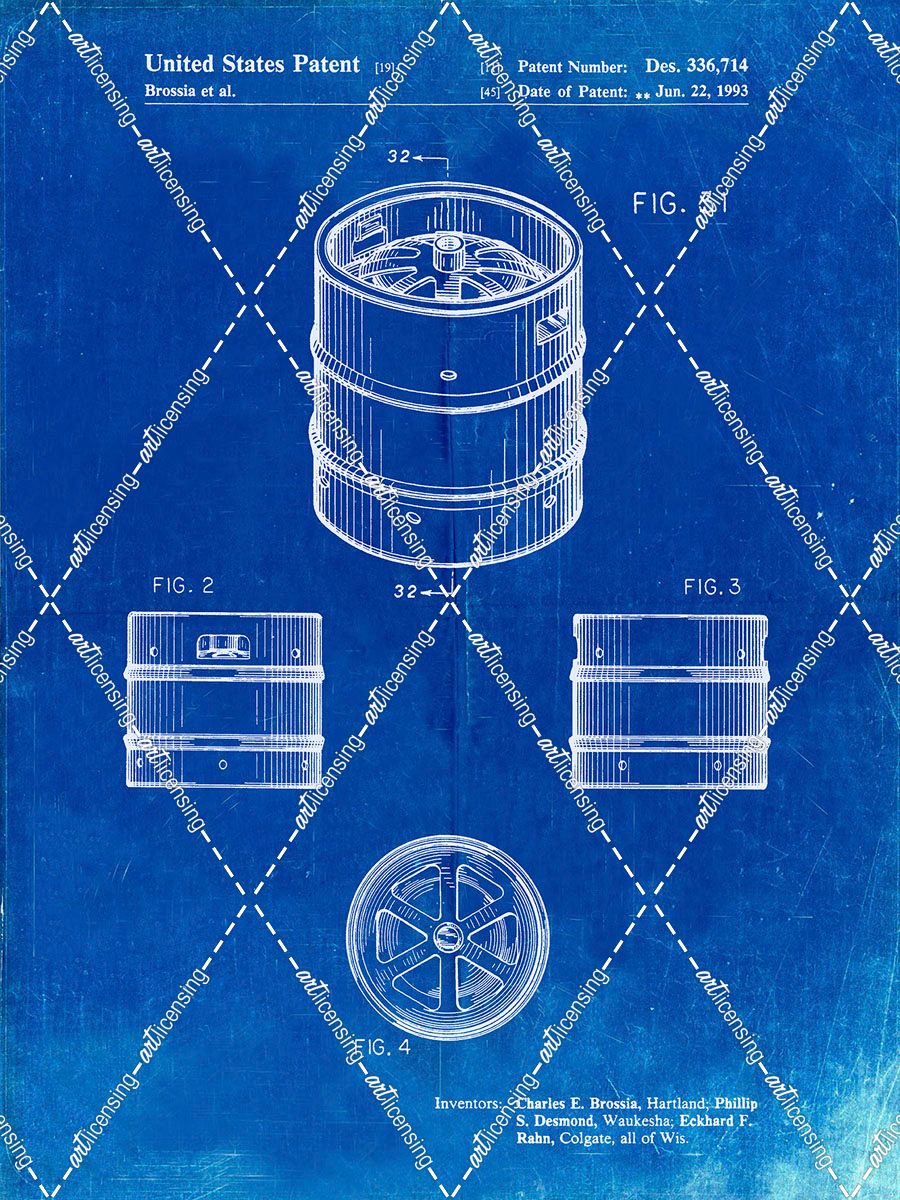 PP193- Faded Blueprint Miller Beer Keg Patent Poster