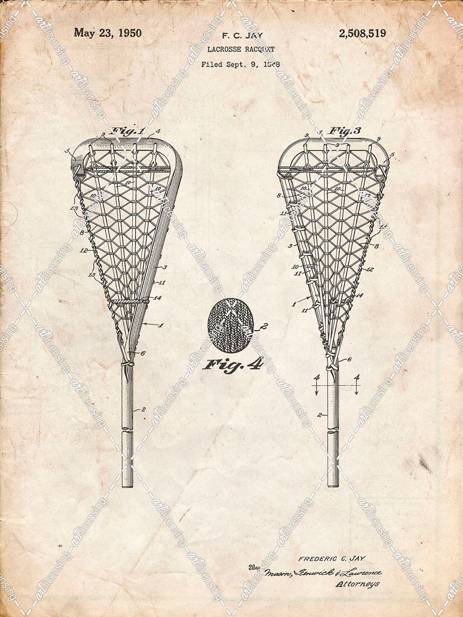 PP199- Vintage Parchment Lacrosse Stick 1948 Patent Poster
