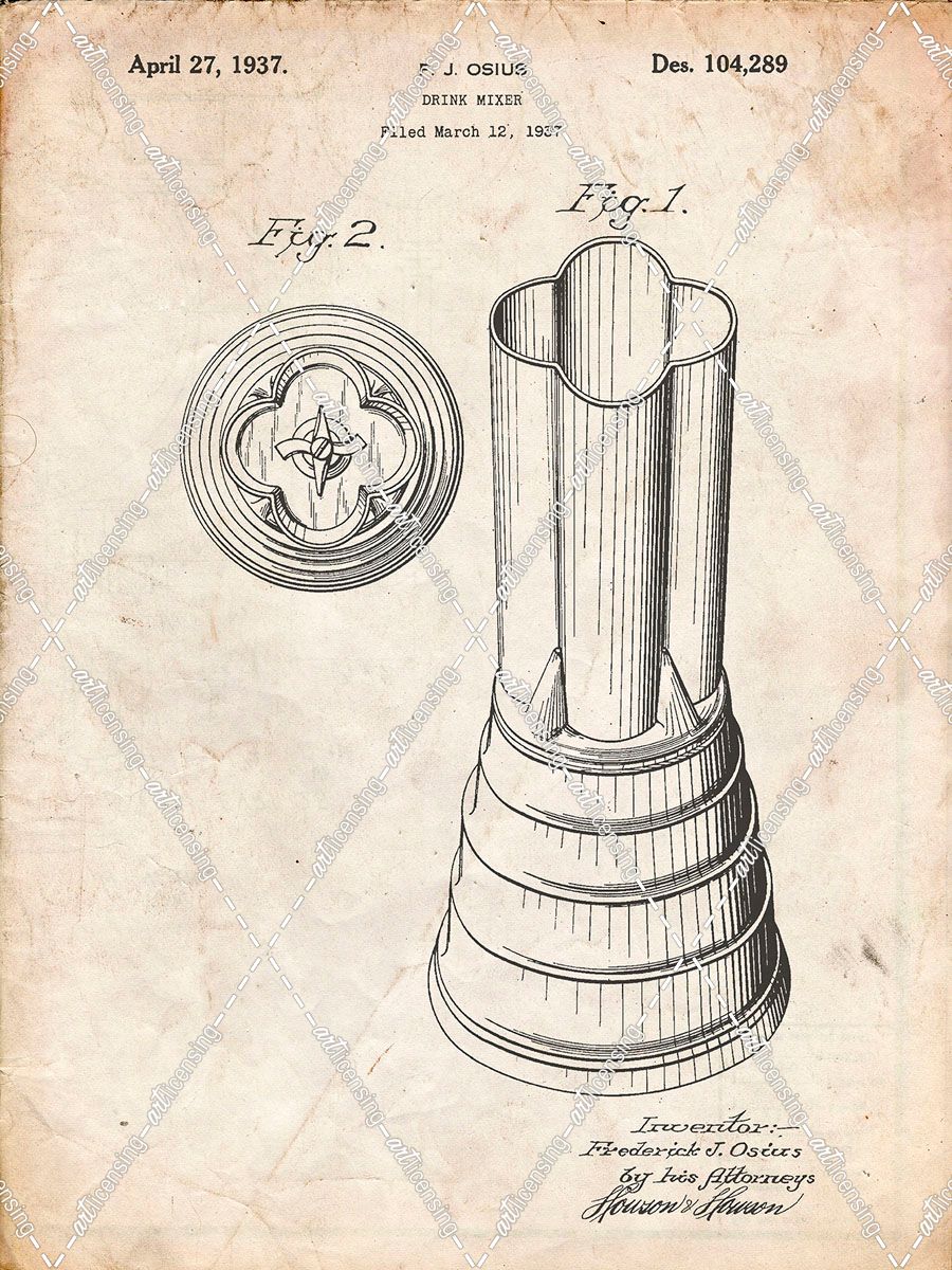 PP205- Vintage Parchment Waring Blender 1937 Patent Poster