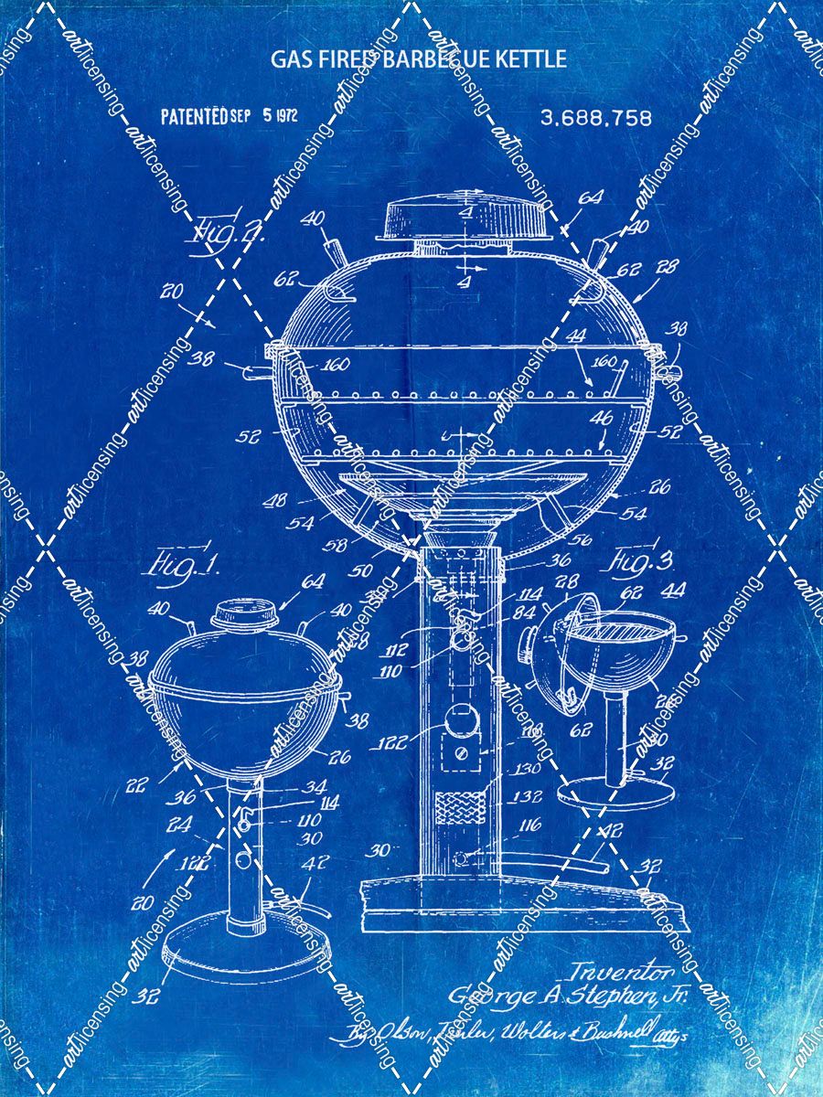 PP206-Faded Blueprint Webber Gas Grill 1972 Patent Poster