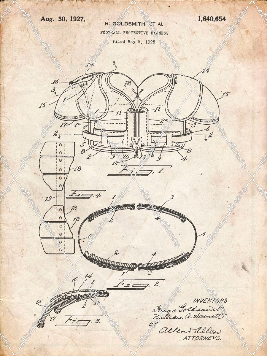 PP219-Vintage Parchment Football Shoulder Pads 1925 Patent Poster