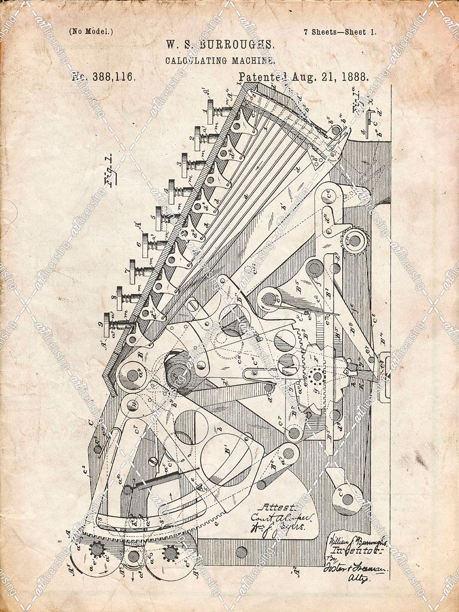 PP226-Vintage Parchment Burroughs Adding Machine Patent Poster
