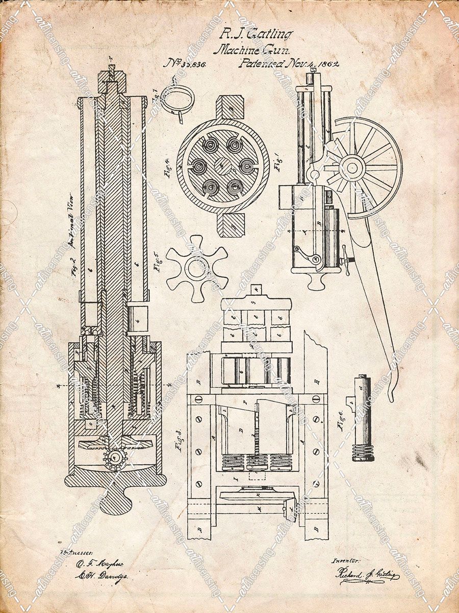 PP23-Vintage Parchment Gatling Gun Patent Poster