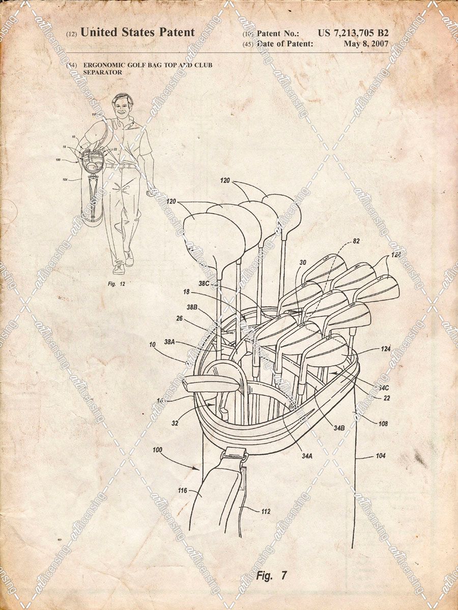 PP234-Vintage Parchment Golf Bag Patent Poster