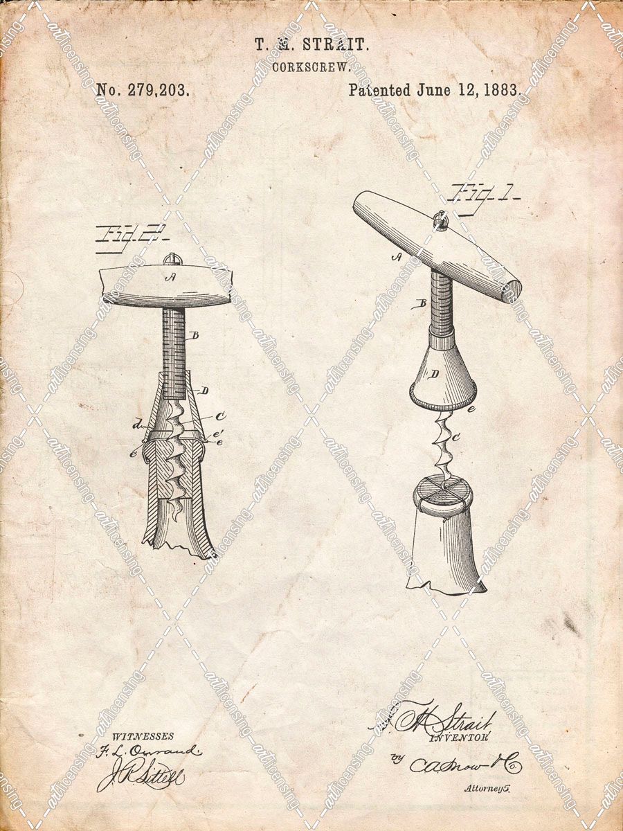 PP235-Vintage Parchment Corkscrew 1883 Patent Poster