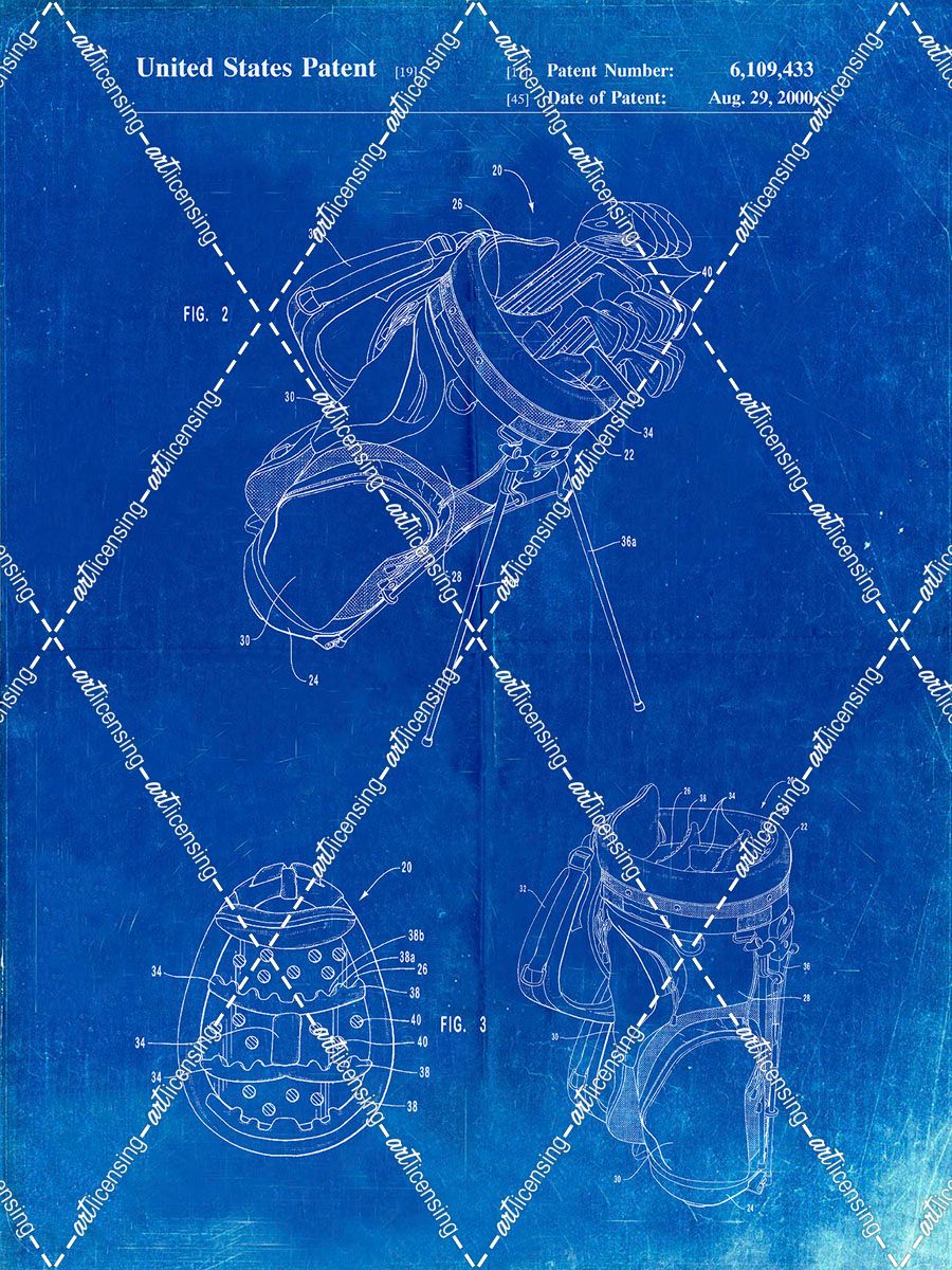 PP239-Faded Blueprint Golf Walking Bag Patent Poster