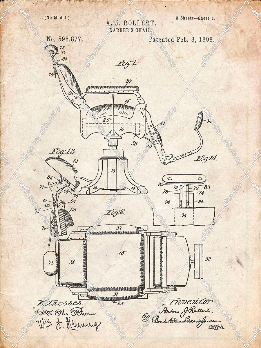 PP244-Vintage Parchment Barbers Chair Patent