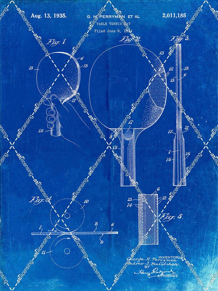 PP250-Faded Blueprint Ping Pong Paddle Patent Poster