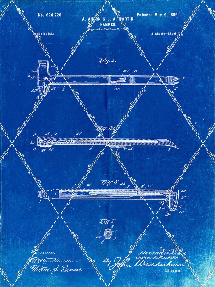 PP255-Faded Blueprint Dispensing Hammer Patent Poster