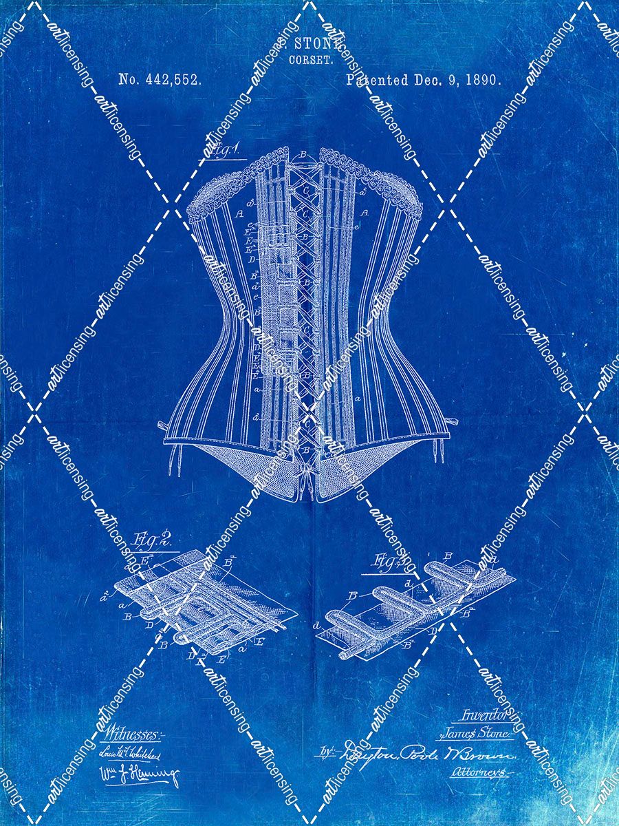 PP259-Faded Blueprint Corset Patent Poster