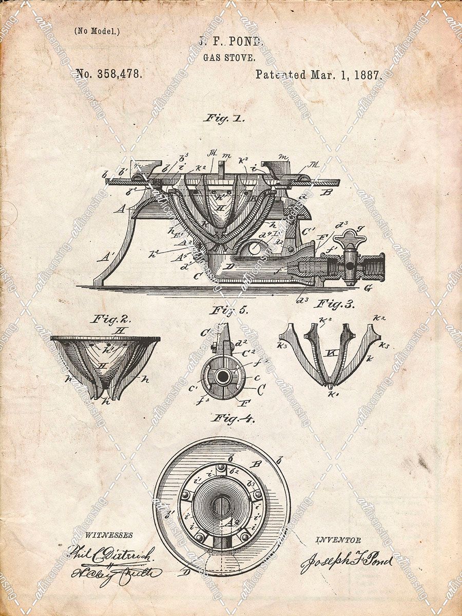 PP274-Vintage Parchment Gas Stove Range 1887 Patent Poster