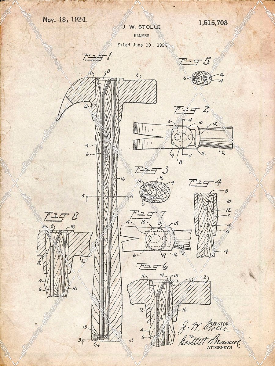 PP275-Vintage Parchment Claw Hammer Patent Poster