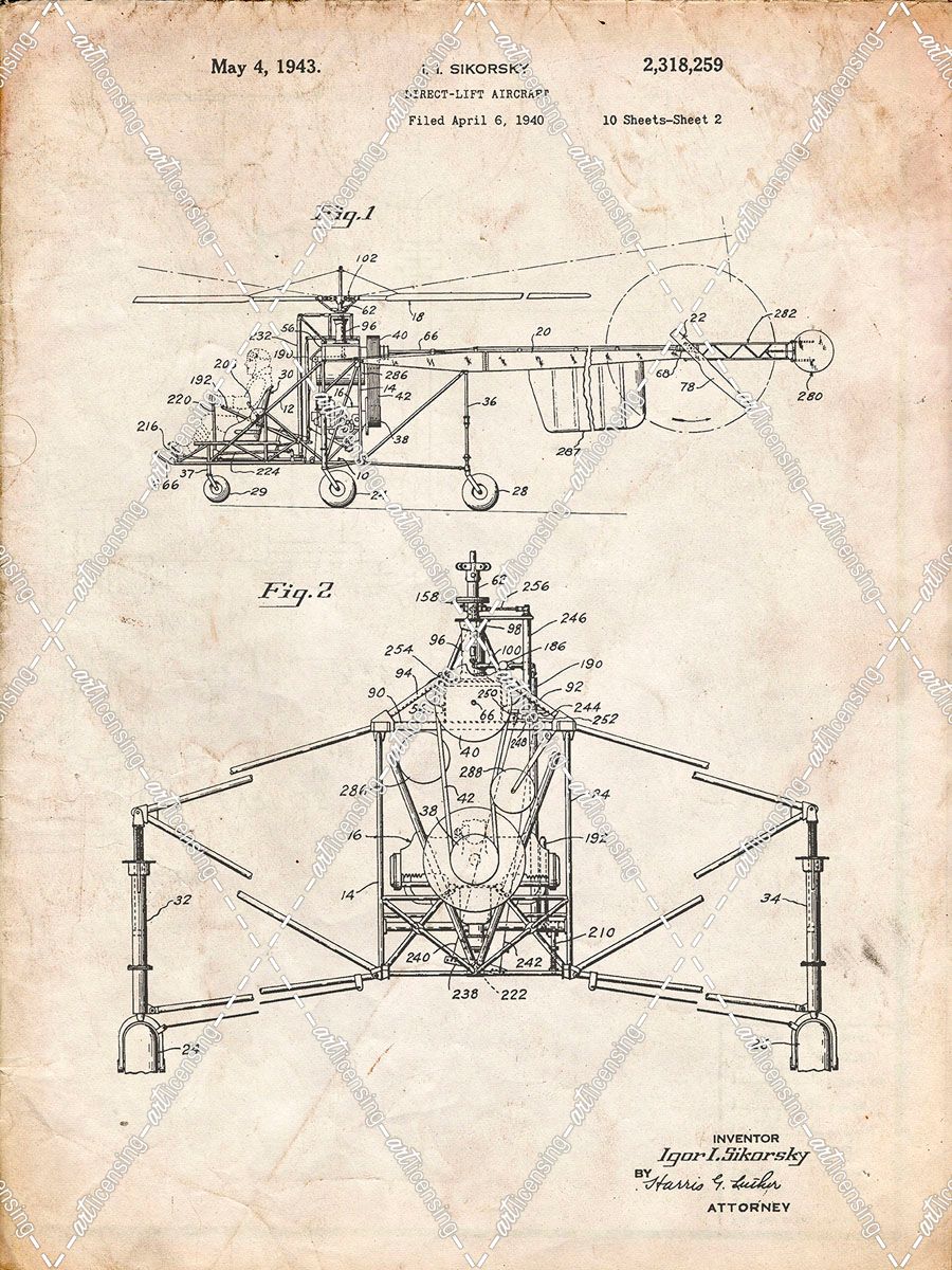 PP28-Vintage Parchment Sikorsky S-47 Helicopter Patent Poster