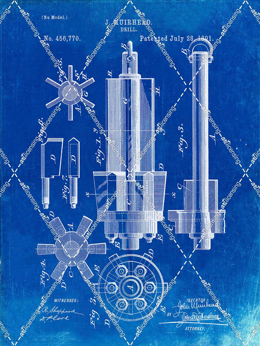 PP280-Faded Blueprint Mining Drill Tool 1891 Patent Poster