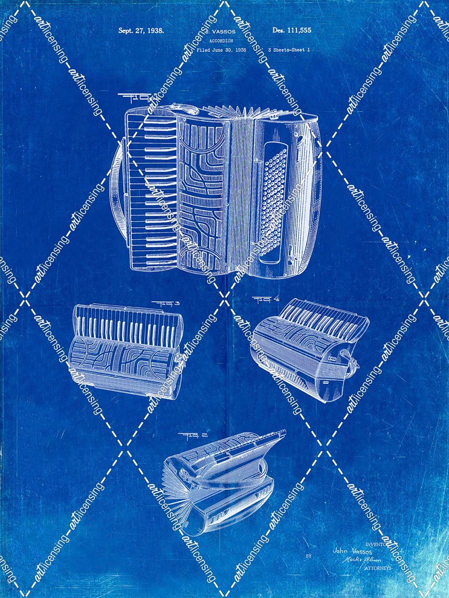 PP283-Faded Blueprint Accordion Patent Poster