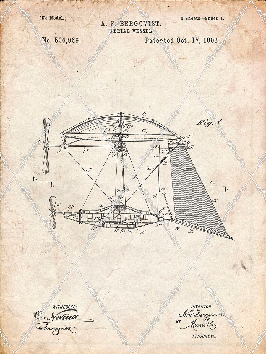 PP287-Vintage Parchment Aerial Vessel Side View Patent Poster