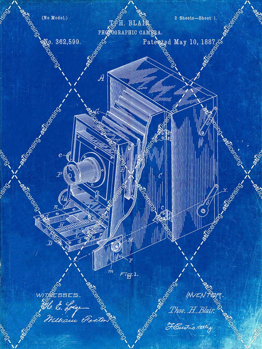 PP301-Faded Blueprint Lucidograph Camera Patent Poster