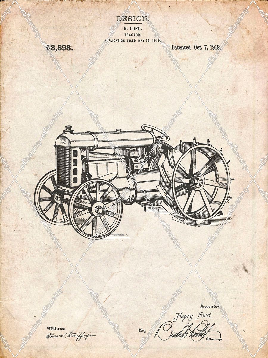 PP310-Vintage Parchment Fordson Tractor Patent Poster