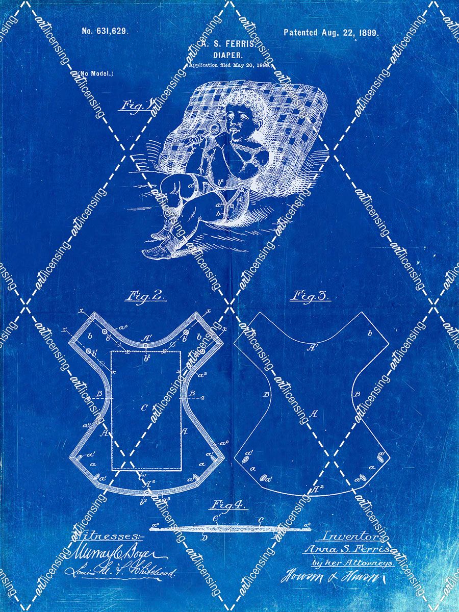 PP317-Faded Blueprint Cloth Baby Diaper Patent Poster