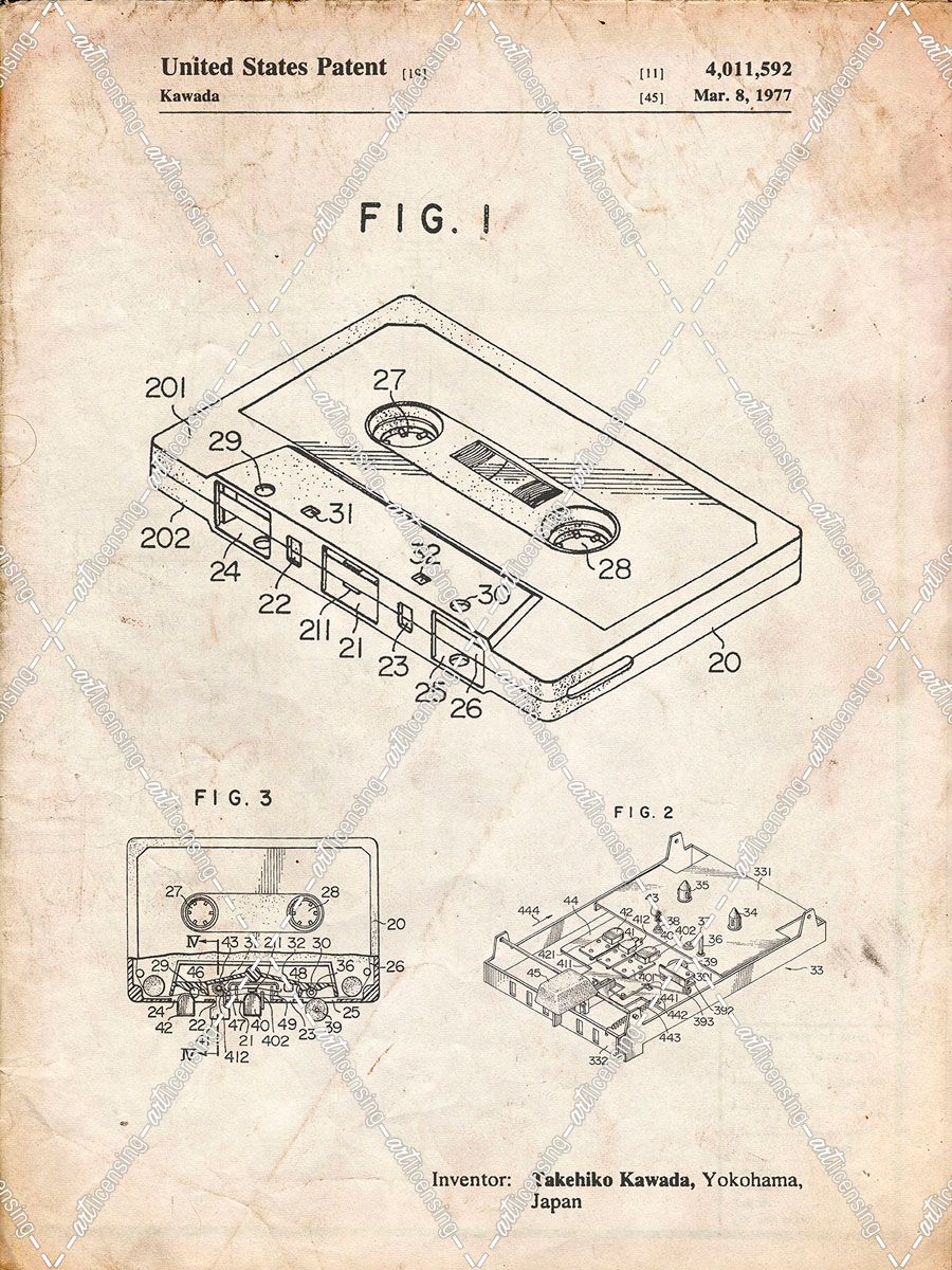 PP319-Vintage Parchment Cassette Tape Patent Poster