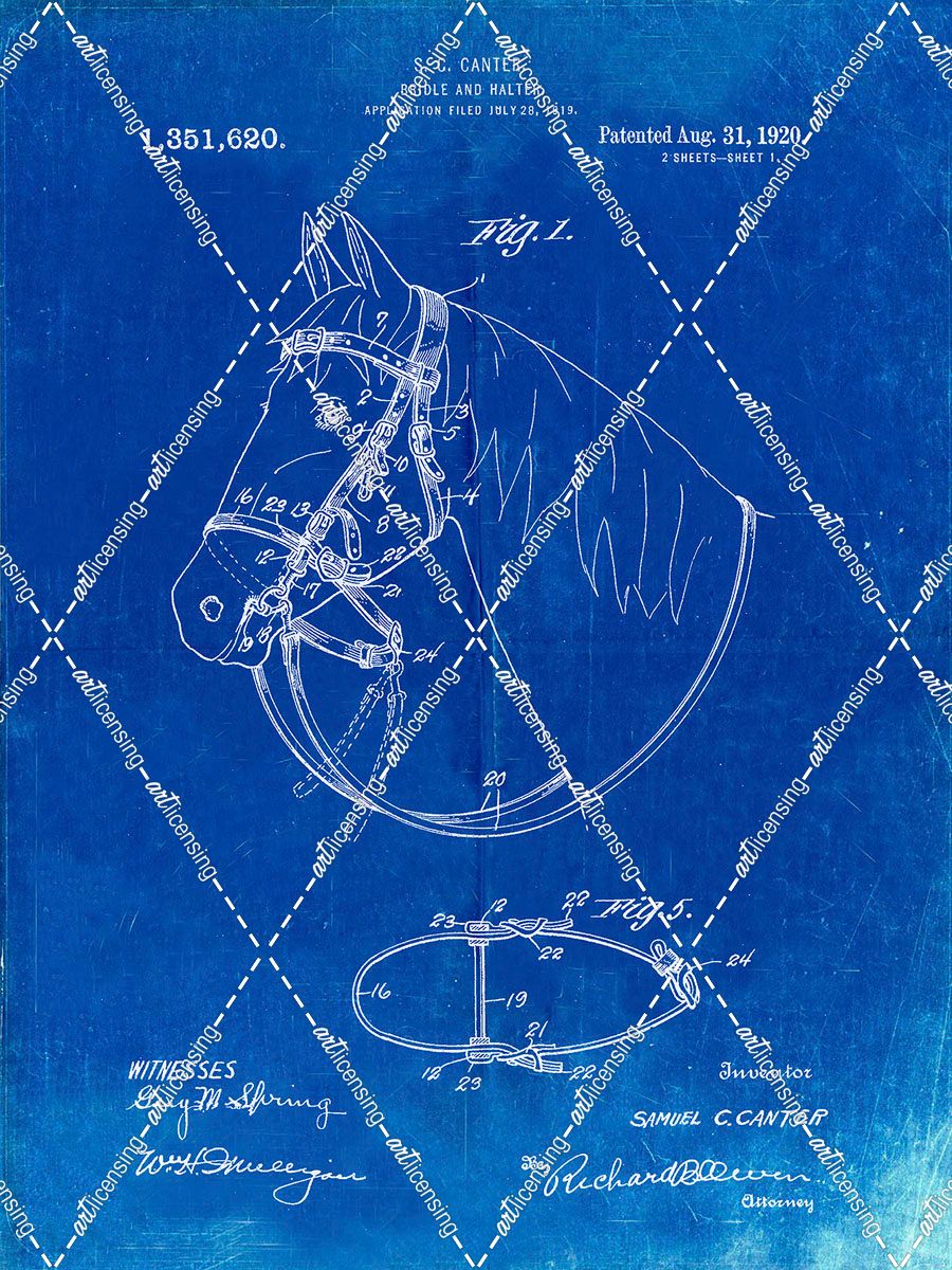 PP338-Faded Blueprint Bridle and Halter Patent Poster