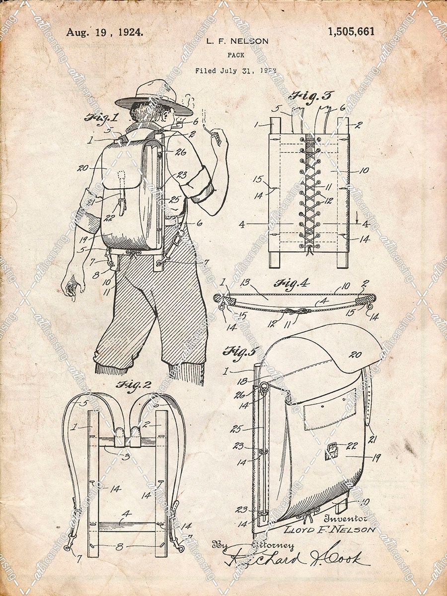 PP342-Vintage Parchment Trapper Nelson Backpack 1924 Patent Poster