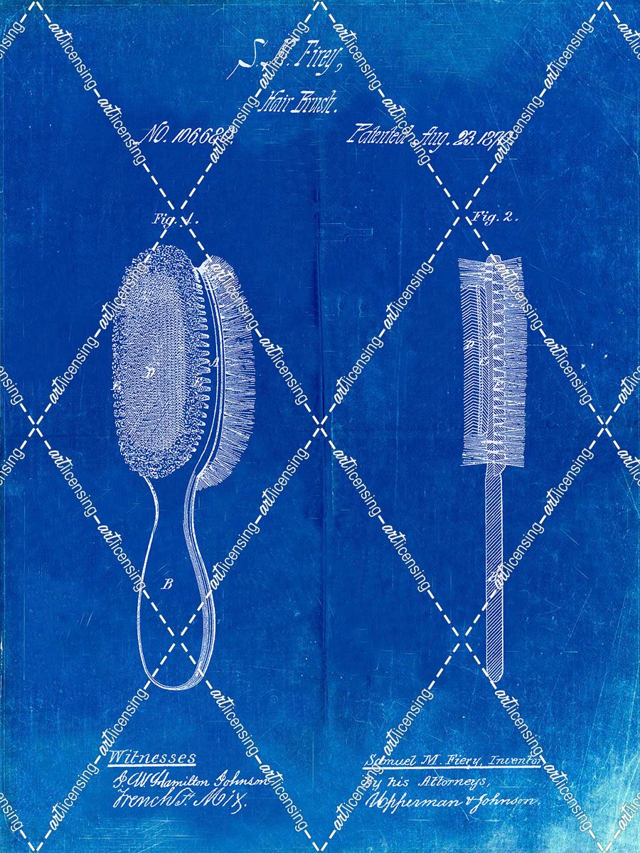 PP344-Faded Blueprint Vintage Hair Brush Patent Poster