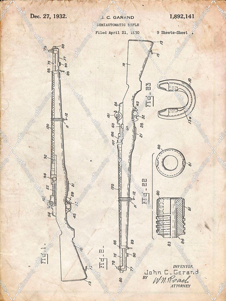 PP35-Vintage Parchment M-1 Rifle Patent Poster