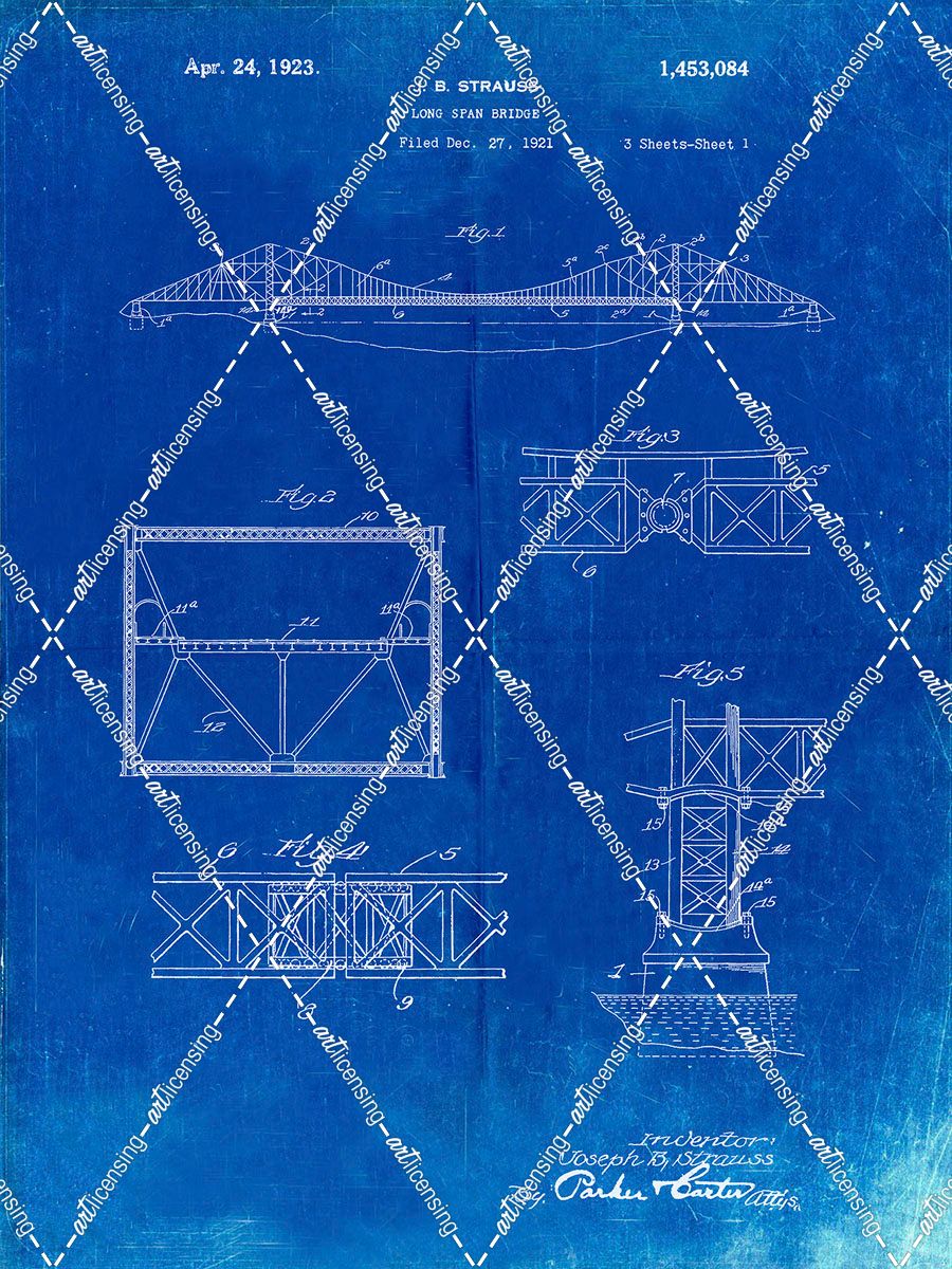 PP350-Faded Blueprint Golden Gate Bridge Patent Poster